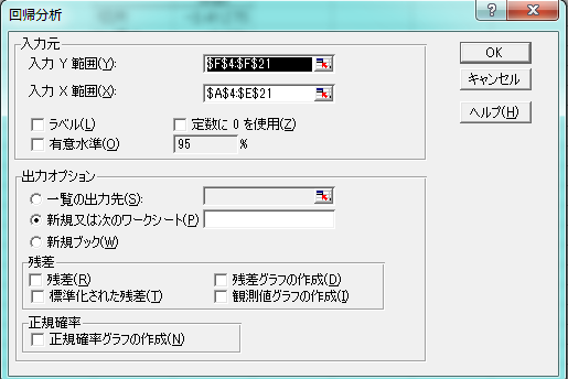 ツール → 分析ツール → 回帰分析