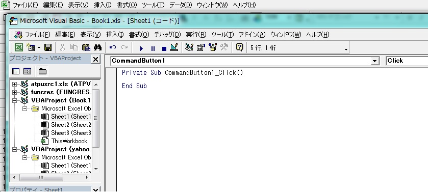 excel vba コマンドボタンからコードを書く コマンドボタンをシートに貼り付けたら、 早速Command1ボタンをクリック。 Private Sub CommandButton1_Click() に コードを書けば Command1ボタンをクリックしたタイミングで 何かの処理ができる。 何かの処理 を MSGBOX "ど忘れ" で書いてみる。MSGBOX "ど忘れ" 1回保存して Command1ボタンをクリックすれば ど忘れ のメッセージがでる。 PR